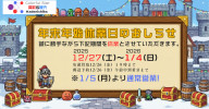 年末年始休業のお知らせ(12/27~1/4)